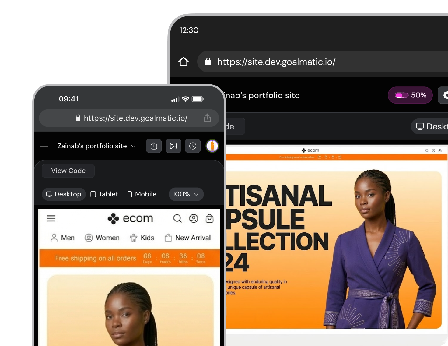 Publish and get a live link to share instantly, export to code, or send an invite to your team to collaborate.